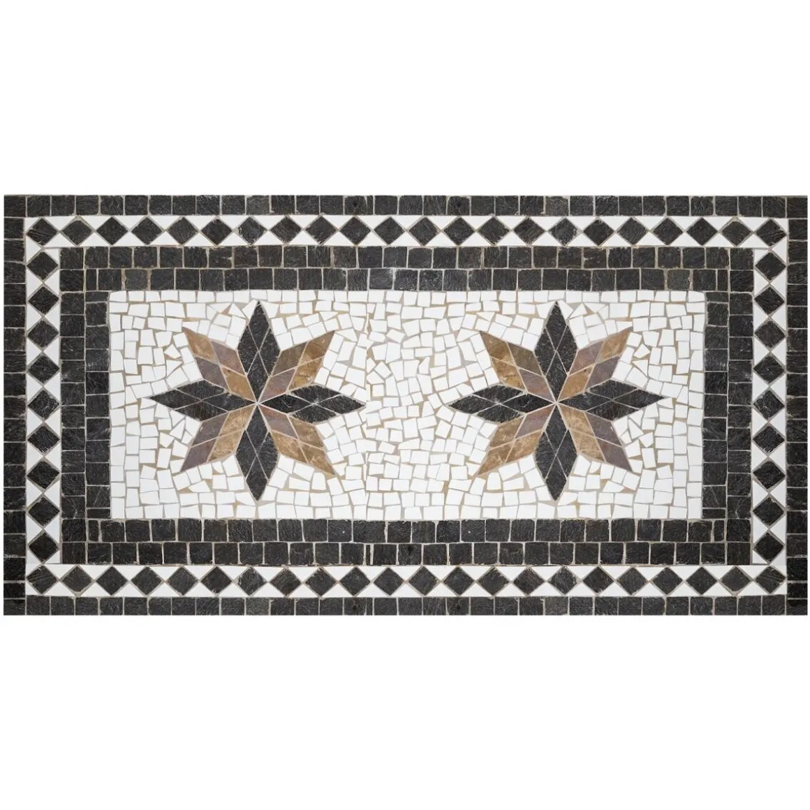 Sur le plateau en ciment, l’alliance de grès et de pierre de différentes couleurs forme une mosaïque sobre et élégante. Elle s’accordera aisément à votre mobilier, tout en possédant un charme particulier qui rappelle la Rome antique. Vous apprécierez également les courbes élégantes de ses pieds en acier.