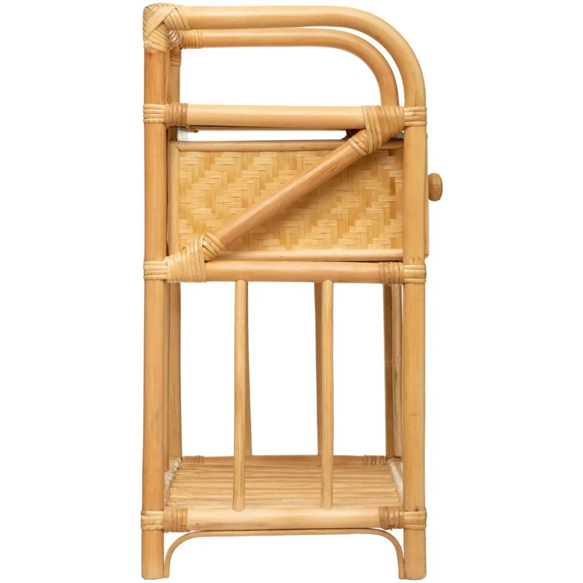Fabriquée en rotin, cette table de chevet dispose de deux étagères et d’un tiroir.
