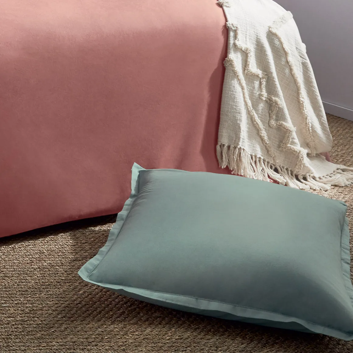 La taie d’oreiller Atmosphera est sobre et élégante avec sa finition point bourdon ton sur ton et son volant plat. En coton, elle passe en machine à 60degrés.