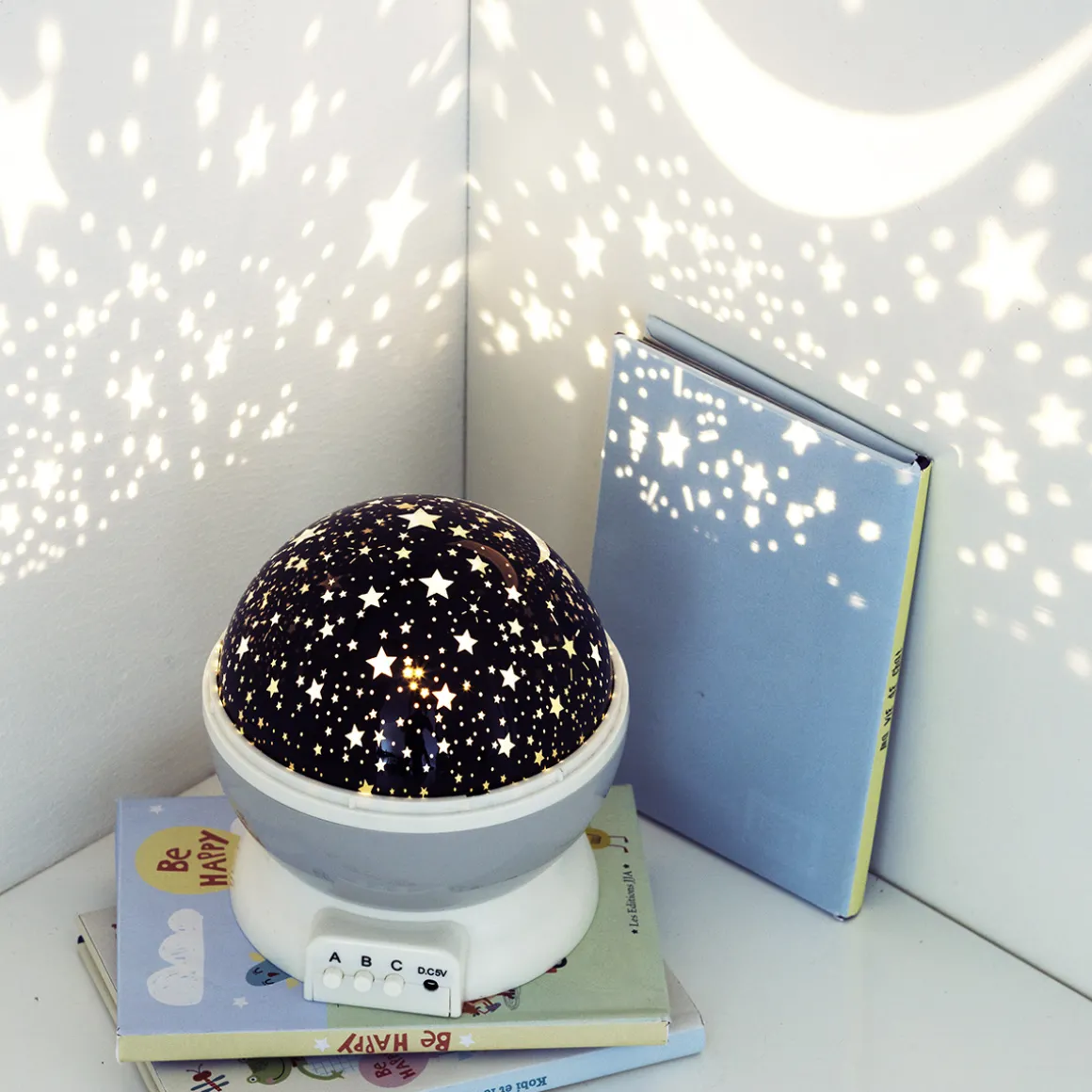 Rechargeable et peu gourmande en énergie grâce à son système d’allumage à LED, cette veilleuse projecteur rotative n’a pas besoin de rester branchée pour fonctionner. Vous pouvez donc la positionner à l’endroit de votre choix.