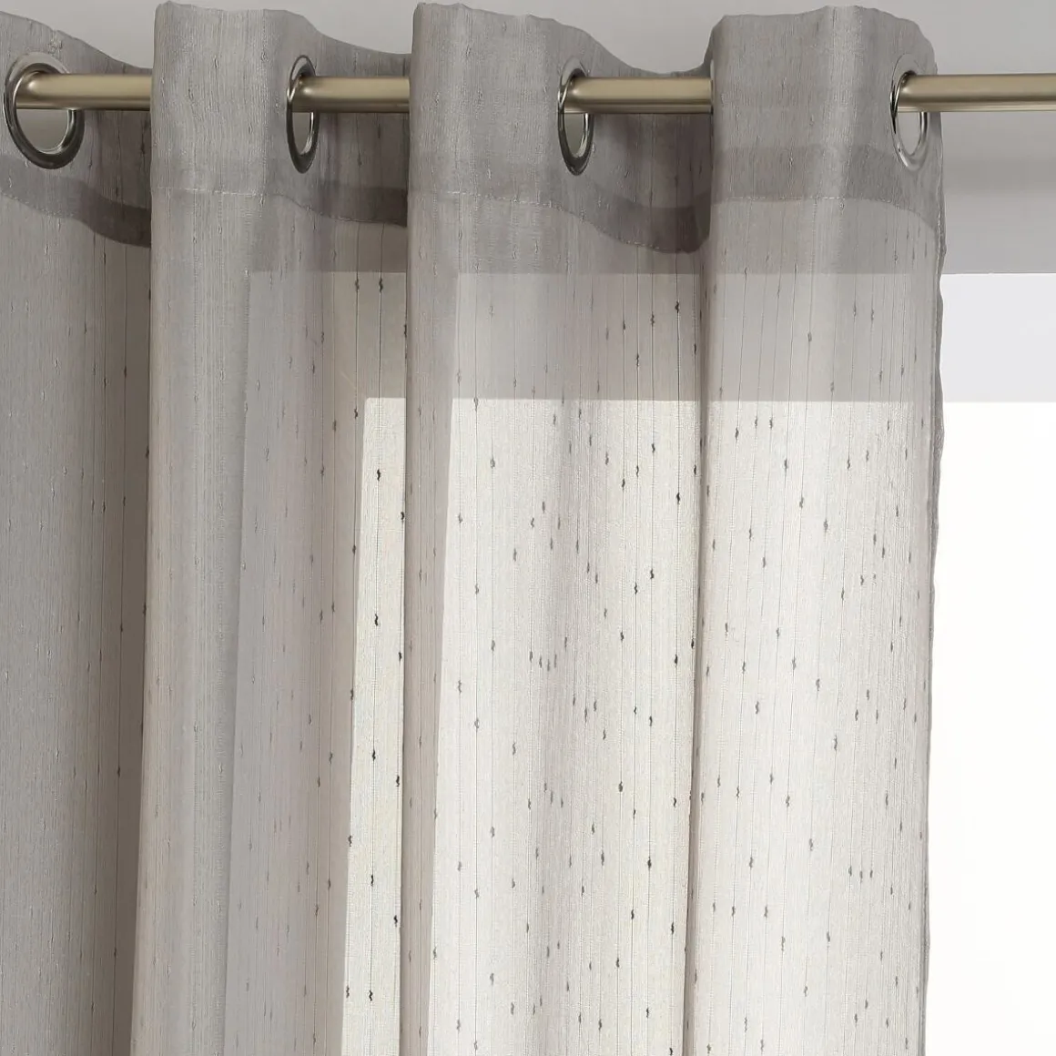 Ce joli voilage en polyester est idéal pour vous protéger des regards extérieurs tout en laissant passer la lumière. Sa ligne esthétique est rehaussée par de fines rayures qui apportent du relief. Les oeillets vous permettront de l’installer facilement sur la tringle de votre choix. Pour le nettoyer, il vous suffit de le laver en machine.