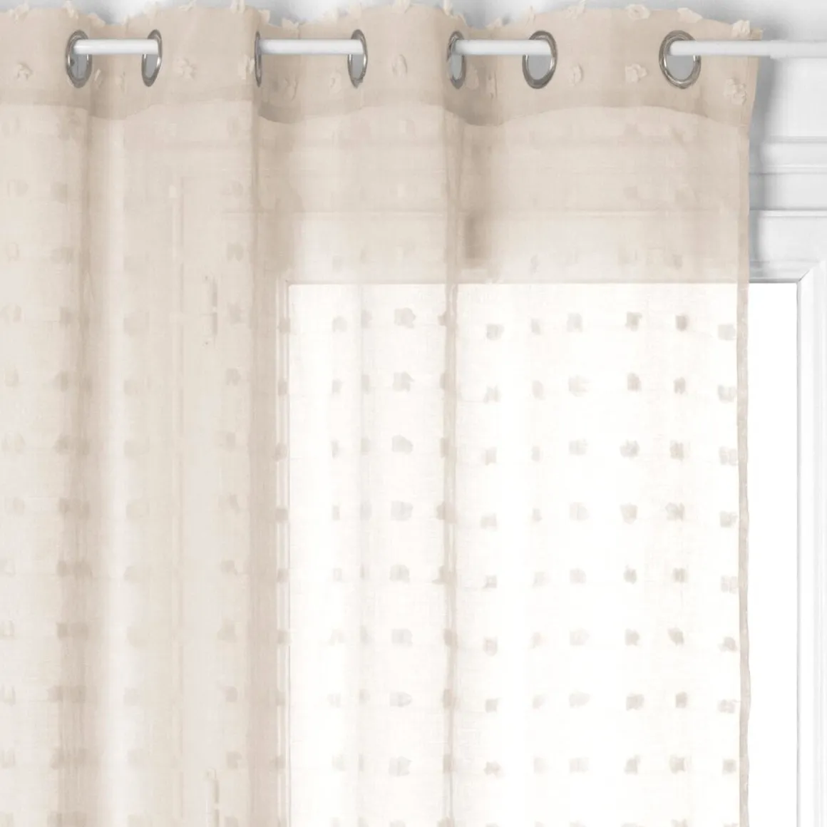 Le voilage « Lily » dissimule la vue extérieure tout en laissant délicatement passer la lumière. Le tissu en polyester est joliment décoré de petits pompons. Son allure aérienne et élégante donnera un style romantique à votre intérieur. Grâce à ses oeillets, il s’installe en un rien de temps sur une tringle à rideaux..