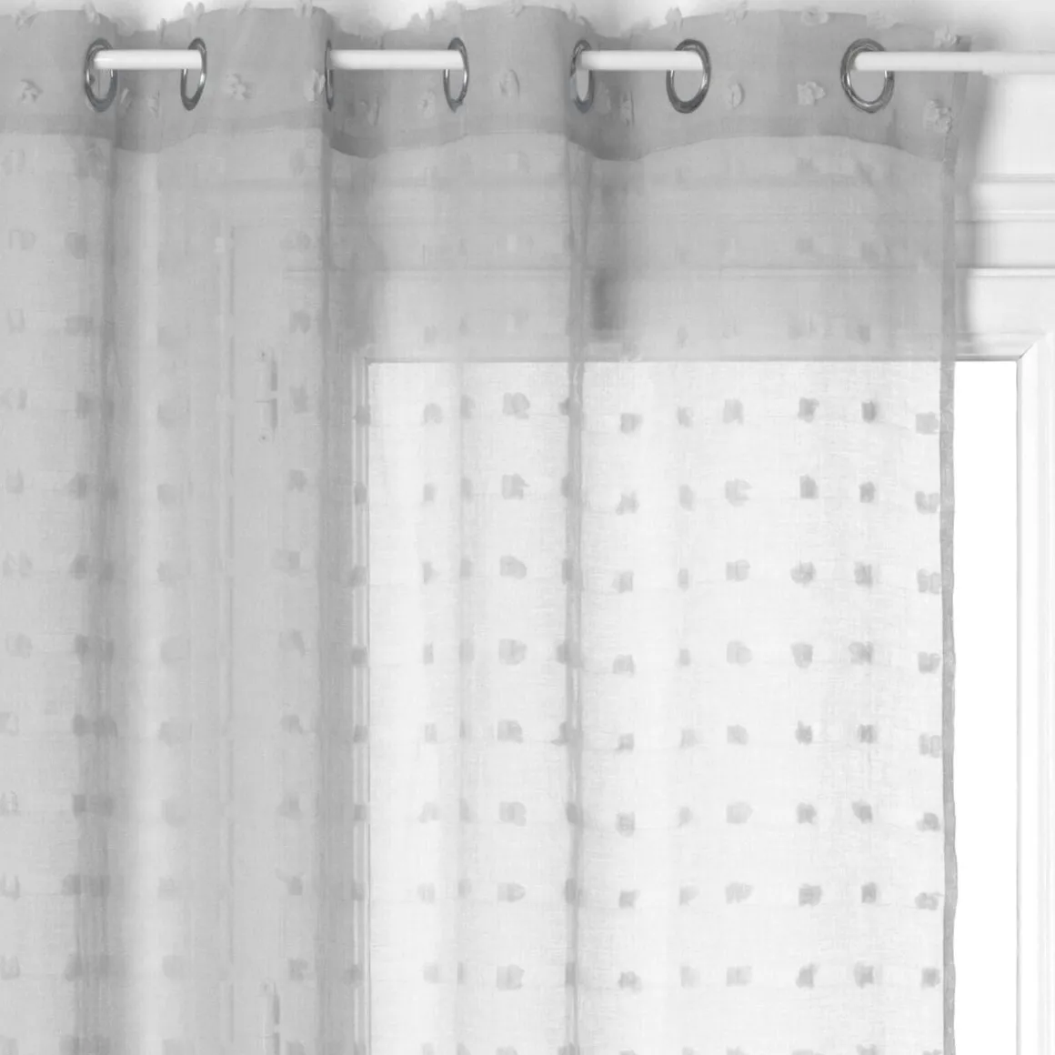 Le voilage « Lily » dissimule la vue extérieure tout en laissant délicatement passer la lumière. Le tissu en polyester est joliment décoré de petits pompons. Son allure aérienne et élégante donnera un style romantique à votre intérieur. Grâce à ses oeillets, il s’installe en un rien de temps sur une tringle à rideaux..