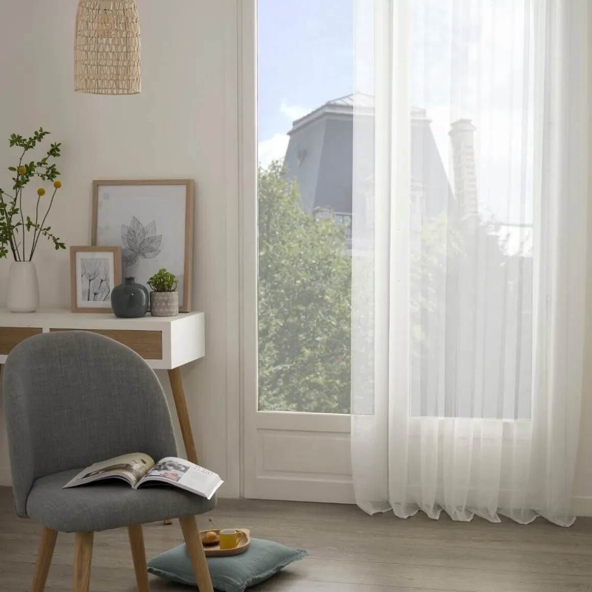 Ce rideau au design épuré laisse passer la lumière et donne une ambiance feutrée à votre espace. Avec ses oeillets métalliques, vous pourrez le glisser aisément à travers une tringle. Le voilage « Moly » habillera aussi bien une fenêtre qu’une porte-fenêtre. Fait en polyester, il vous suffit de le laver en machine.